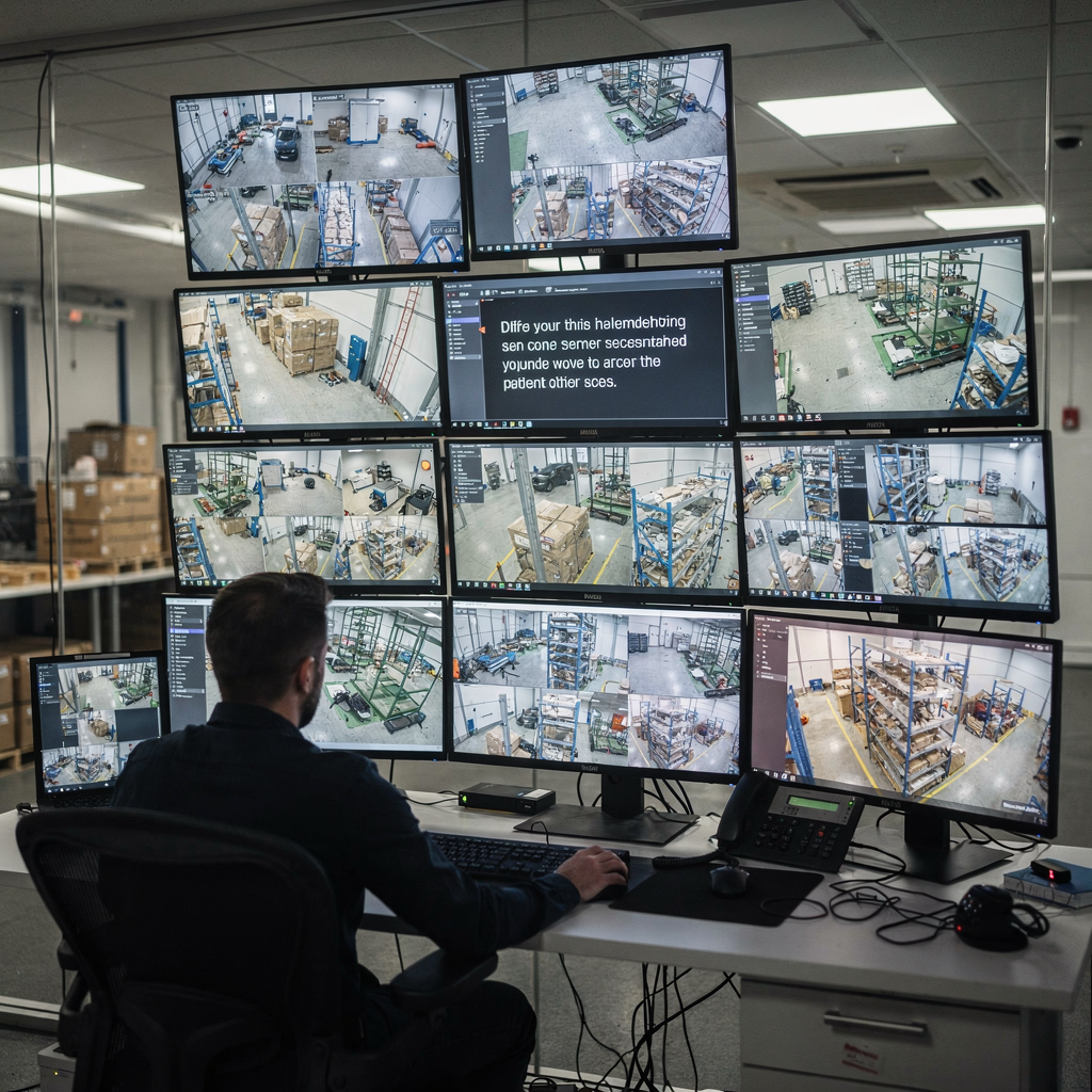 Control room operator interface showing thumbnail results on multiple monitors with neutral lighting and clean modern equipment, no text or numbers