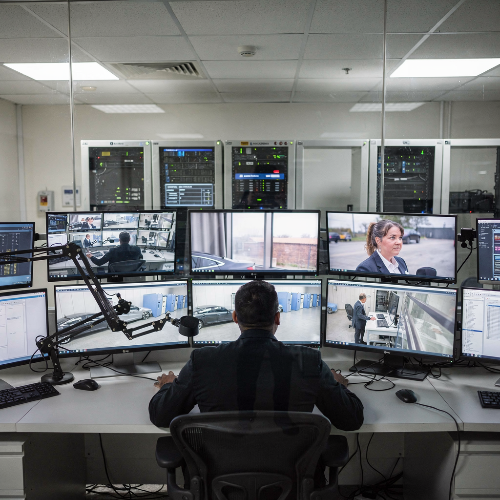 Sala di controllo con schermi e server edge
